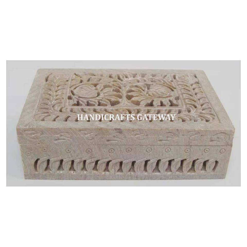 Natural Soapstone Carving Boxes Flower Decorative Carving Leaf Design Box for Ring Earring Gifts Packaging Box for Home Gifts