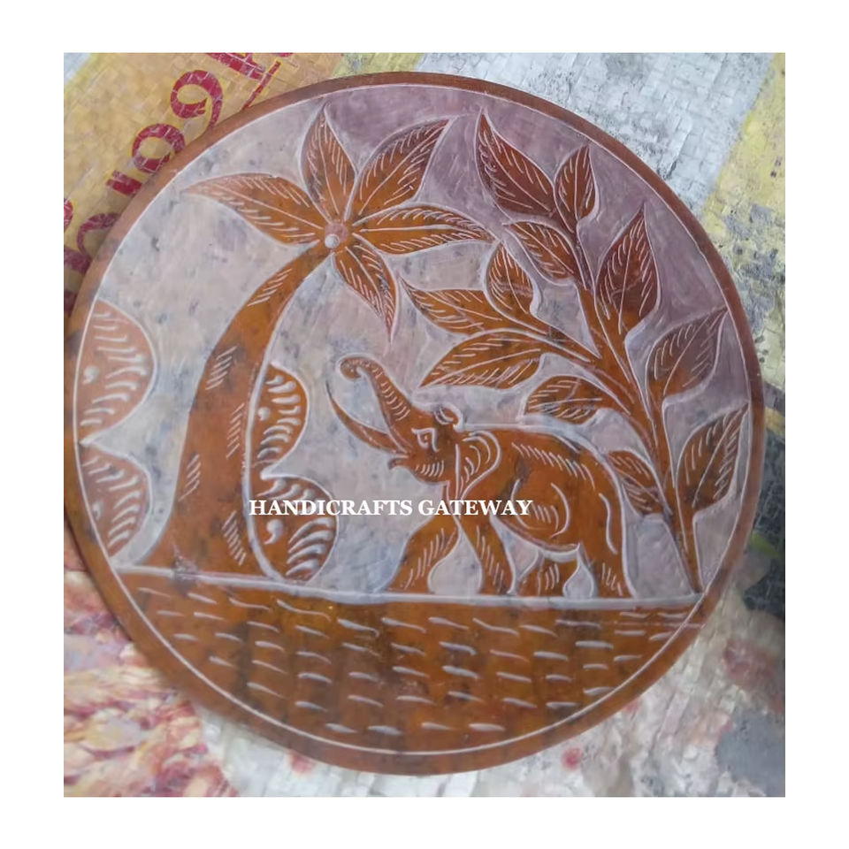 Support pour bâtonnets d'encens en pierre ollaire naturelle, fait à la main, motif floral et éléphant, finition polie, pour hôtel ou restaurant de luxe