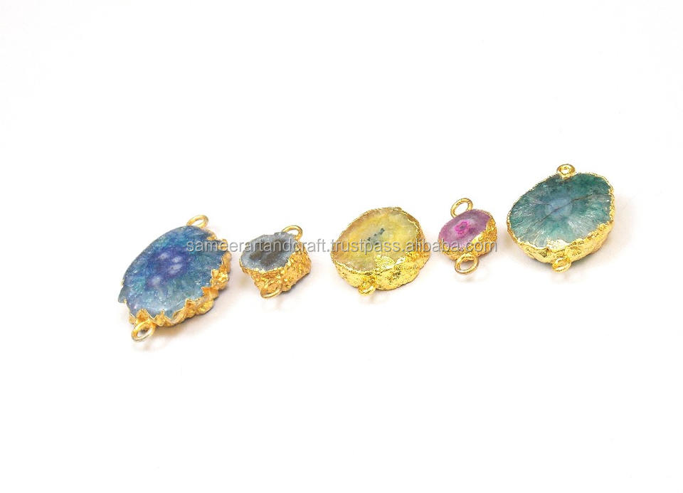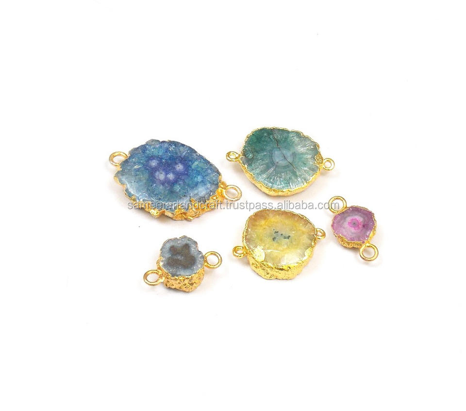 Pierre précieuse de quartz solaire naturel avec cadeau de forme naturelle plaqué or électrolytique pour son connecteur de lunette de fabrication de bijoux