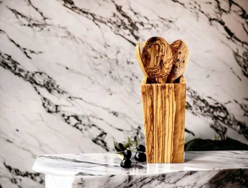 Natural Solid Wood Modern Multifunction Utensil Holder Heat Resistant Kitchen Tool Storage Container Handmade Eco Friendly