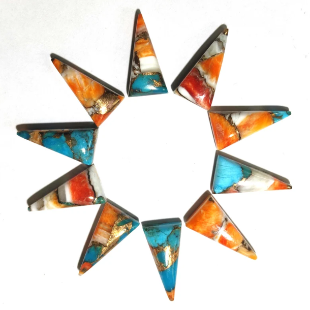 Cabochon en nacre naturelle opalescente turquoise cuivrée, forme triangulaire longue et plate, fournisseur en gros de pierres précieuses pour bijoux