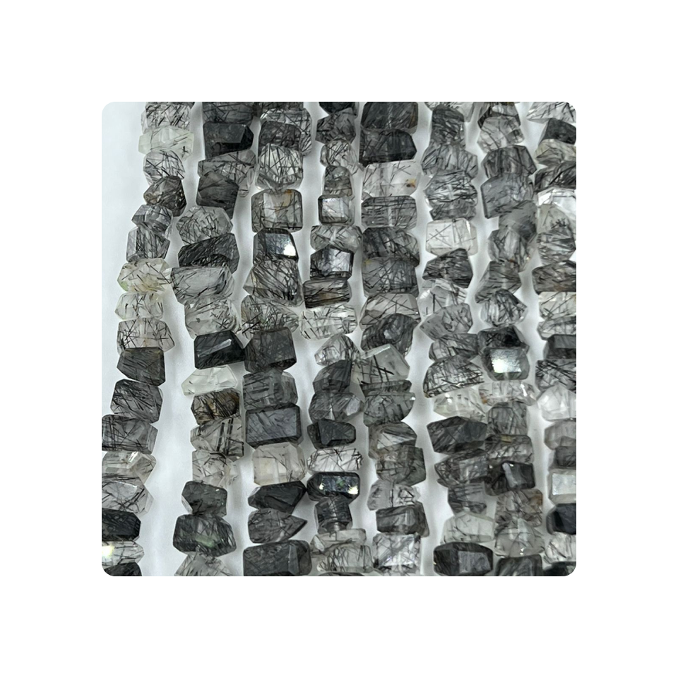 Perles de quartz rutilé noir à facettes en forme de pépites