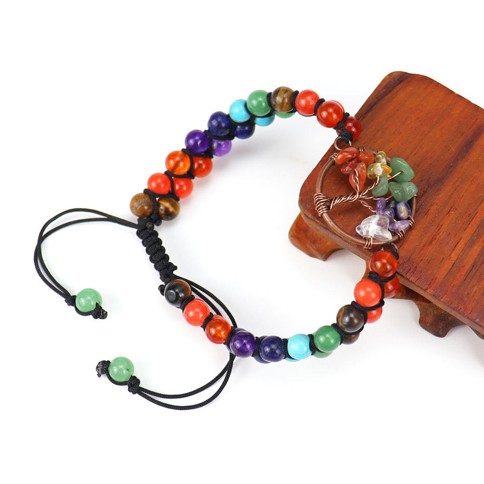 Bracelets en pierres naturelles, perles de cristal, arbre de vie tissé, bijoux en pierres précieuses, aventurine verte, 7 chakras, bracelets réglables de guérison
