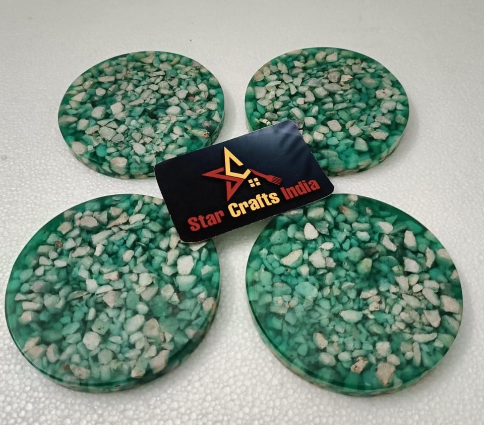 Ensemble de 4 dessous-de-verre multifonctionnels en résine époxy avec pierres naturelles intégrées, écologiques et modernes, style terrazzo