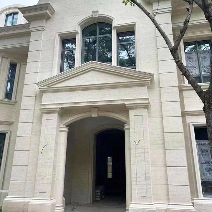 Pierre naturelle, piliers de maison, design, décoration, façade, Tambac beige, revêtement mural extérieur, pierre beige, carreaux de calcaire