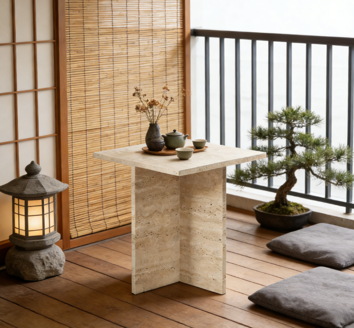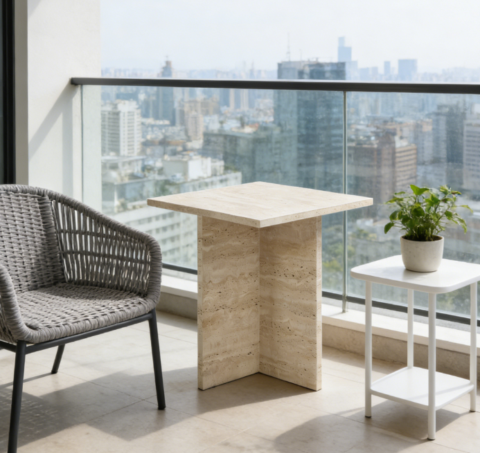 Travertine Square Side Table