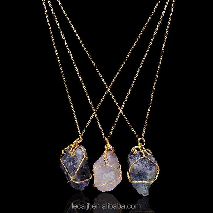 Chaque collier en pierre naturelle, collier pendentif en fil de fer, accessoires d'importation de bijoux de mode dans un sac d'opp, puis dans un sac à bulles, chaque 12 sac à bulles dans un grand sac d'opp.