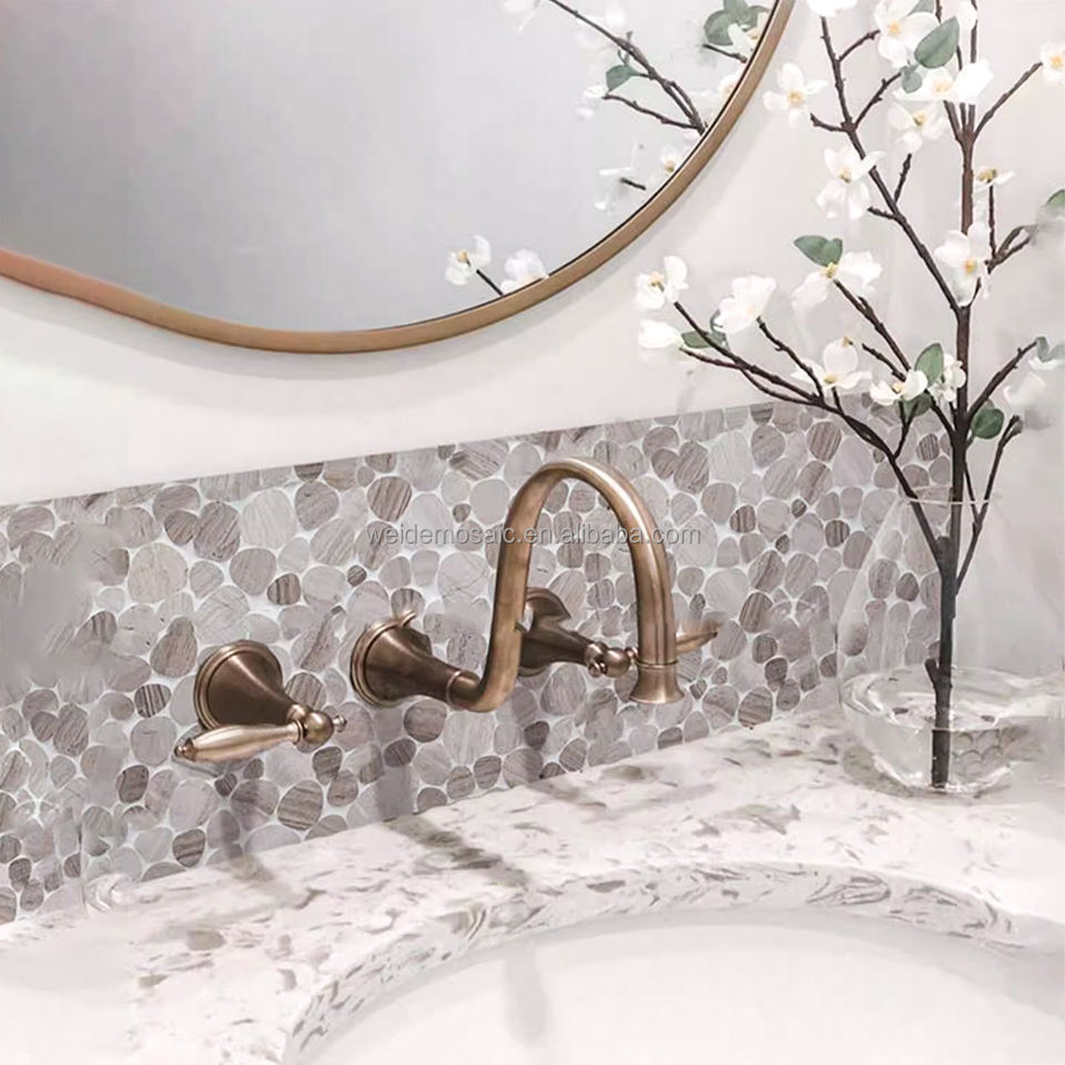 Mosaïque de galets en pierre naturelle, mosaïque de marbre blanc et gris pour la décoration des murs et sols de salle de bain et de cuisine, design d'intérieur moderne
