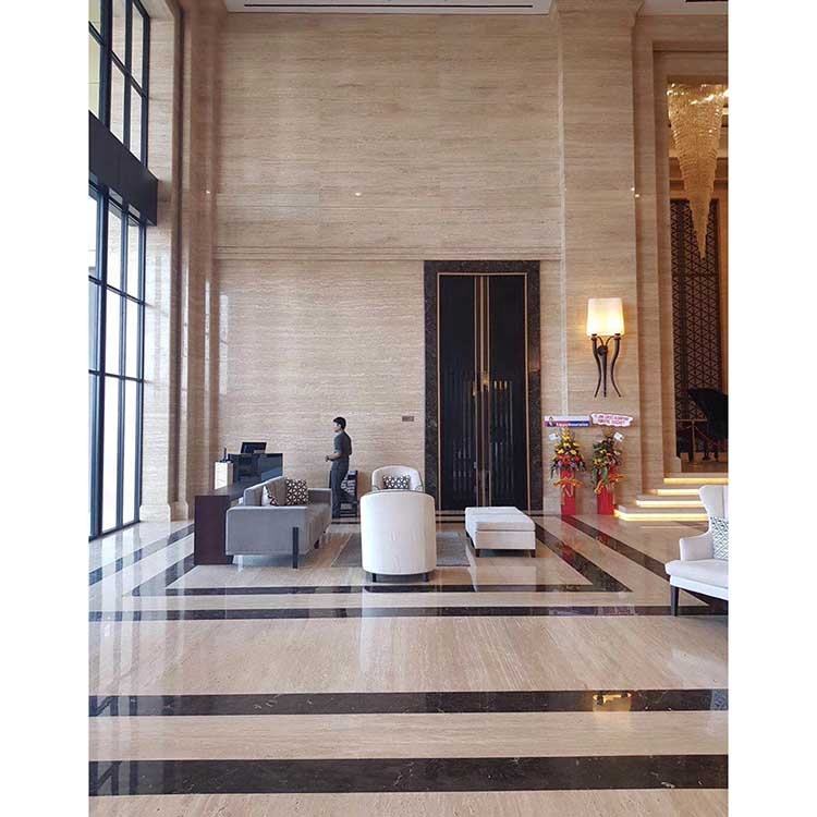 Nom du produit:Carrelage de revêtement mural en pierre m2 prix plancher beige travertin marbre