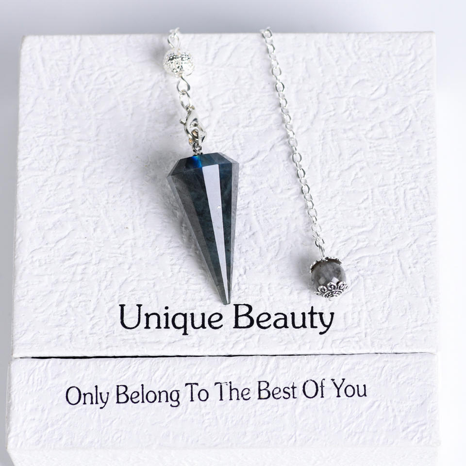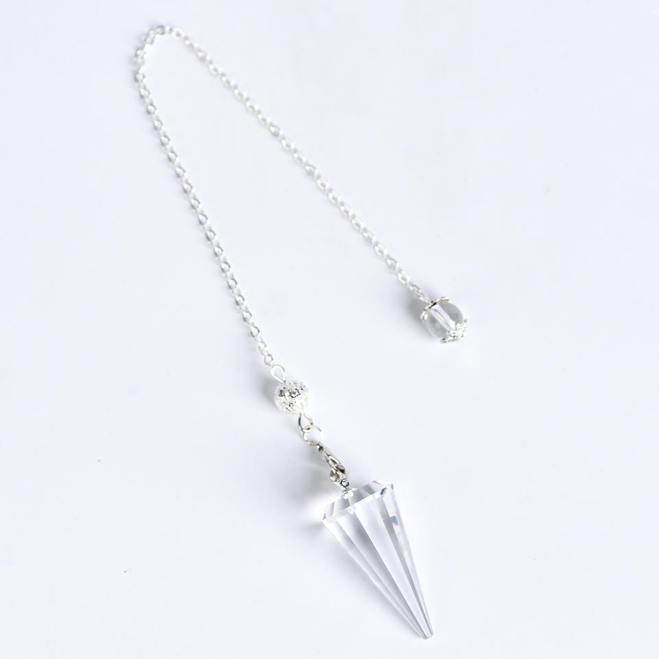 Natural Stones Pendulum for Dowsing Divination 7 Chakra Chain Hexagonal Column Silver-color Cone Pendant Reiki Pendule