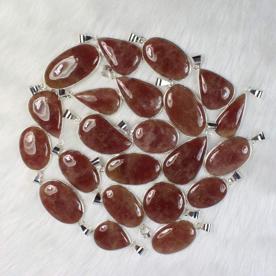 Nom du produit:Quartz fraise plaqué argent pendentifs