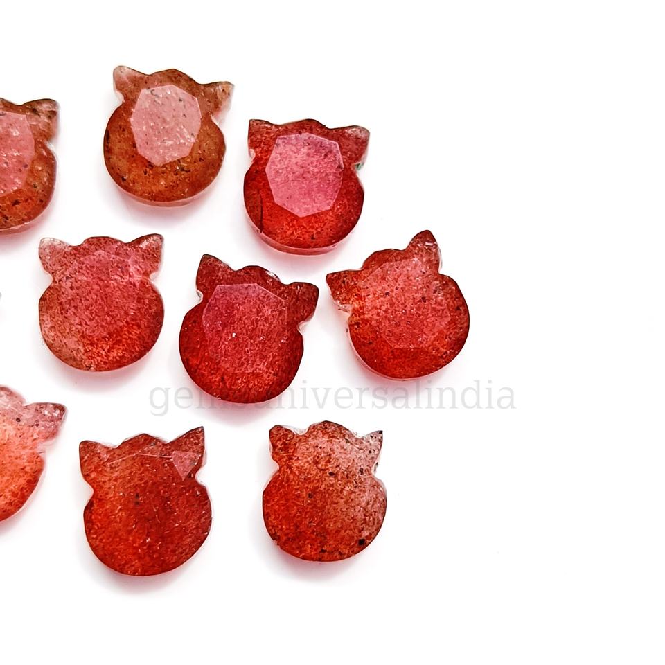 Nom du produit:Forme naturelle de chat Quartz fraise sculpté pierre précieuse à facettes