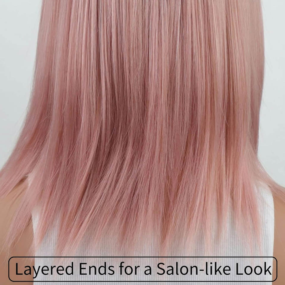 Natural Style Brown Mixed Blonde Short Bob Wig for Women with Bangs 10 Inch Heat Resistant Daily Wear Synthetic Wig Ombre Pink