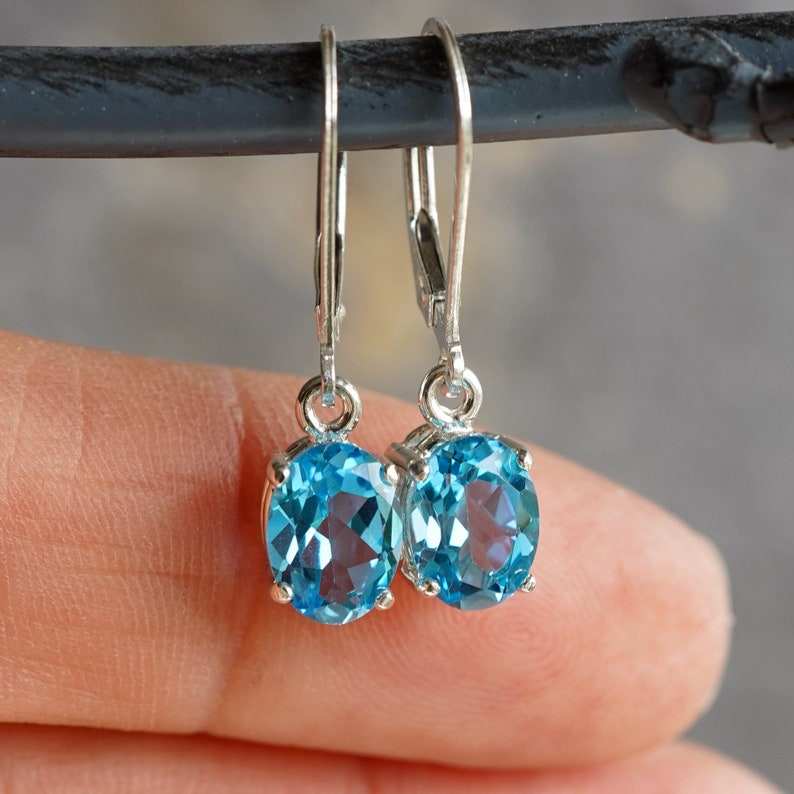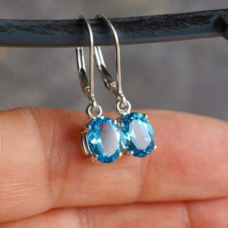 Keyword:Blue Topaz Stud Earrings With Sparkling Dangle Gemstone Jewelry