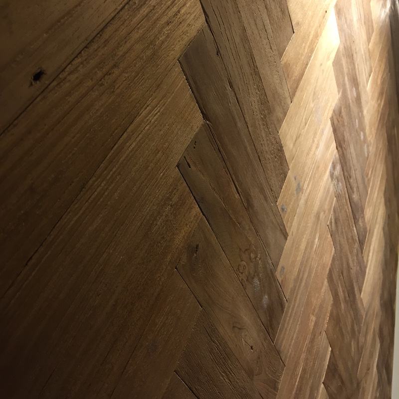 Panneau mural en bois de teck naturel à motif en chevrons, design moderne, divertissement, maison, appartement, hôtel, centre commercial, décoration commerciale