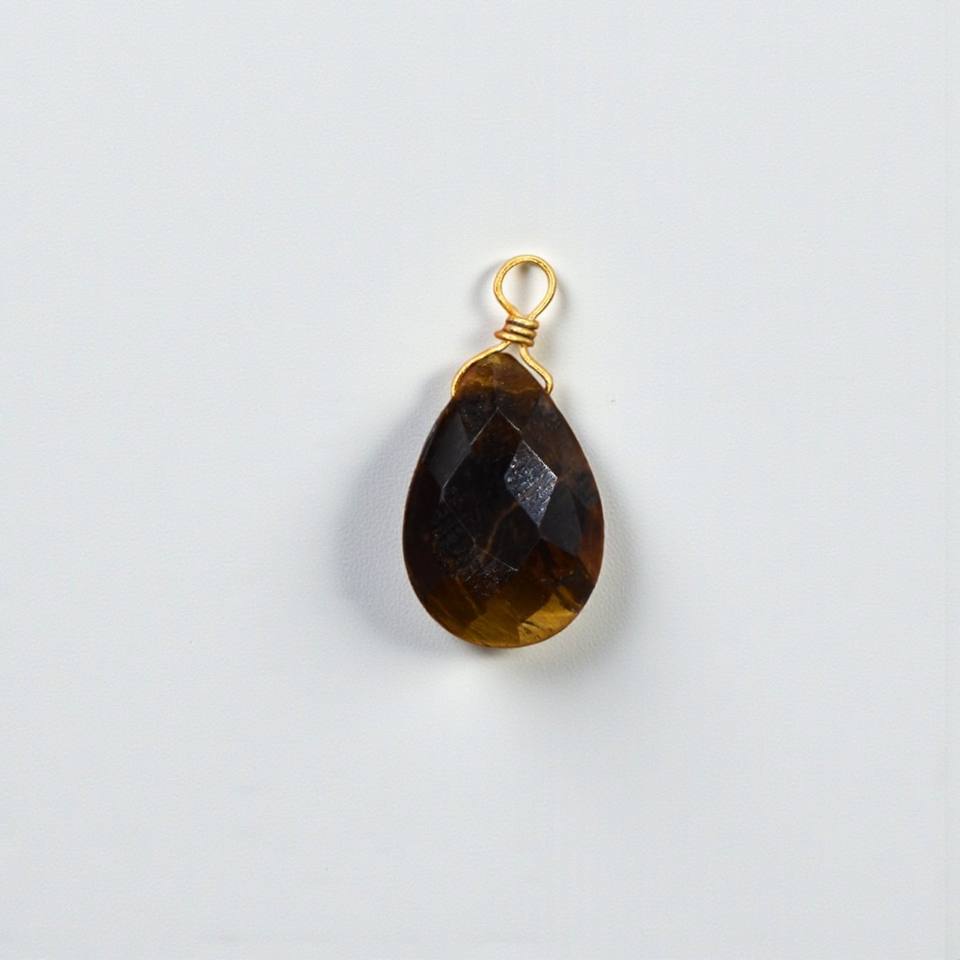 Natural Teardrop Tiger Eye Pendant Faceted Gemstone Gold Wire Wrapped Charm Jewelry Making Necklace Component Wholesale