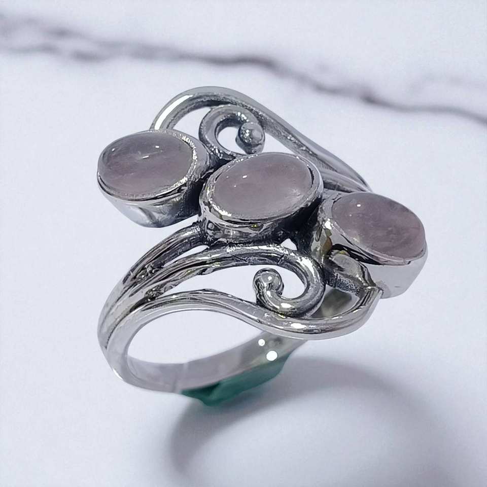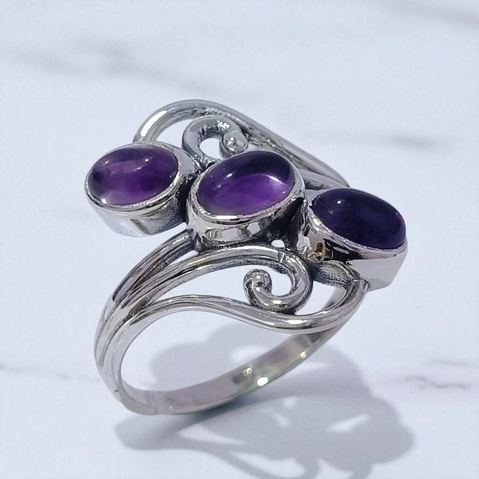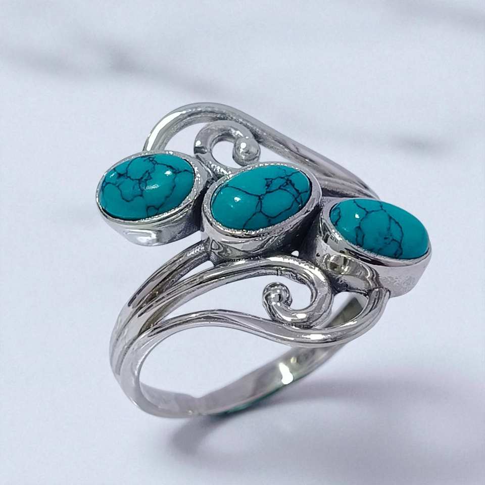 Bague artisanale en trois pierres précieuses naturelles : turquoise, améthyste et quartz, prix de gros, bijoux