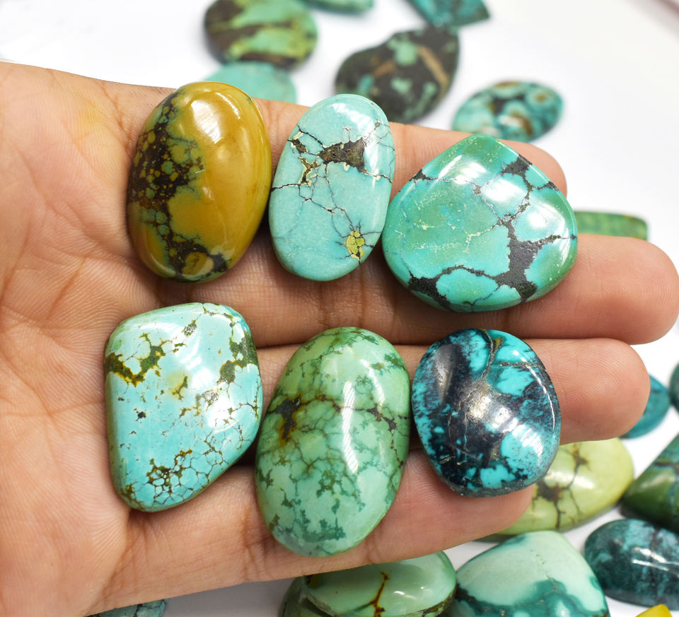 Lot de cabochons en turquoise tibétain naturel, plaquettes de pierres précieuses en turquoise en vrac, turquoise multicolore, cabochons en turquoise en vrac pour bijoux.