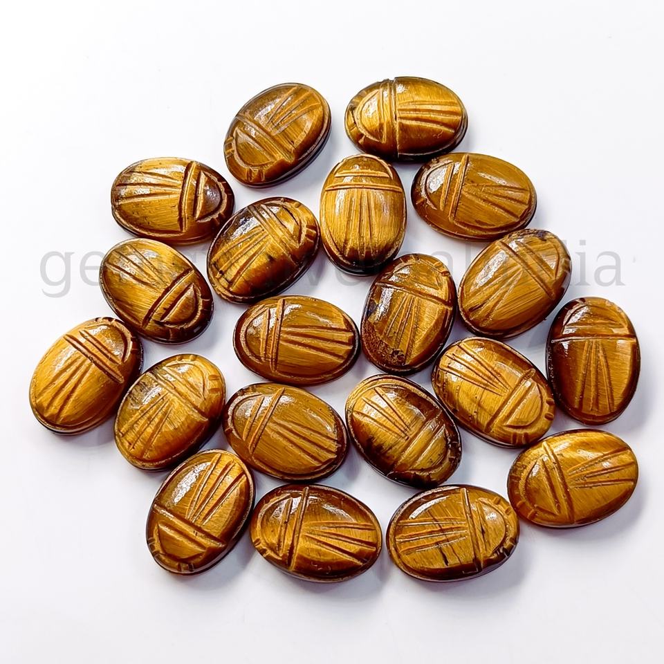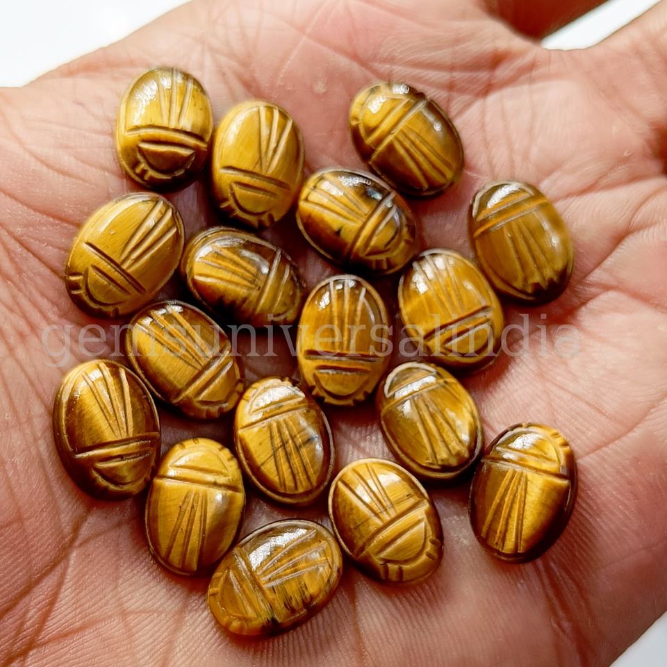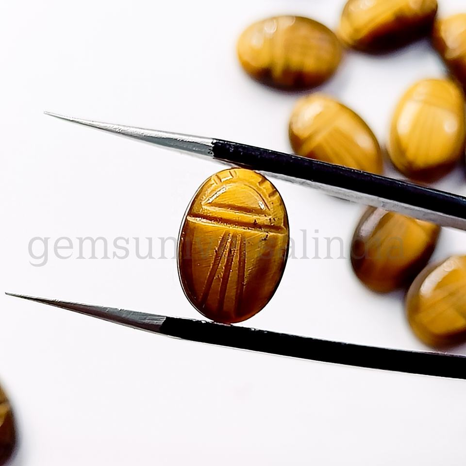 Oeil de tigre naturel scarabée pierre précieuse sculptée