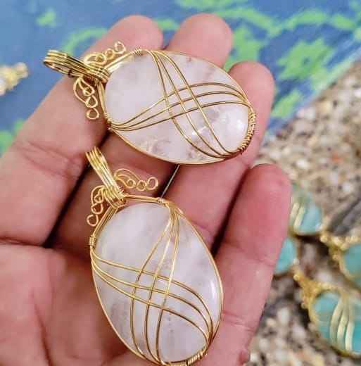 Pierres précieuses Cristaux de fil enroulé pendentif