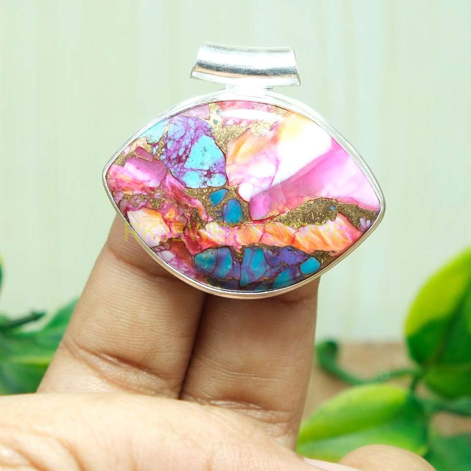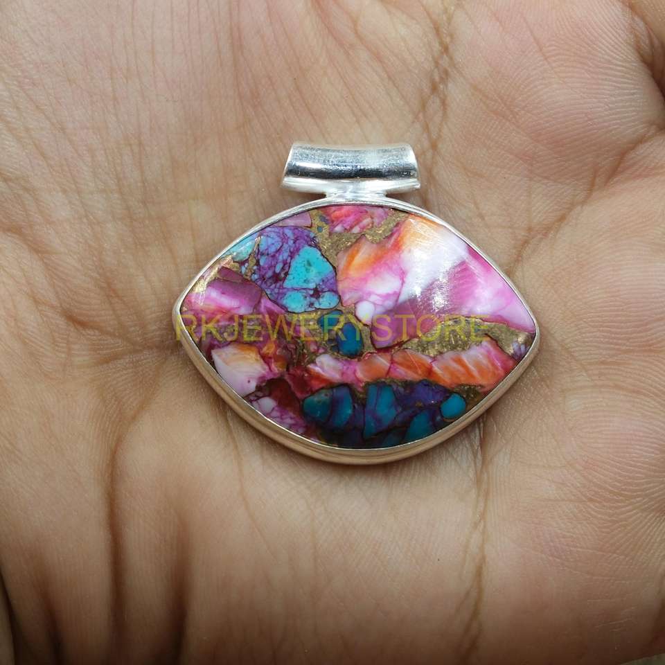 Nom ou mots:Pendentif en argent avec mosaïque multicolore faite à la main