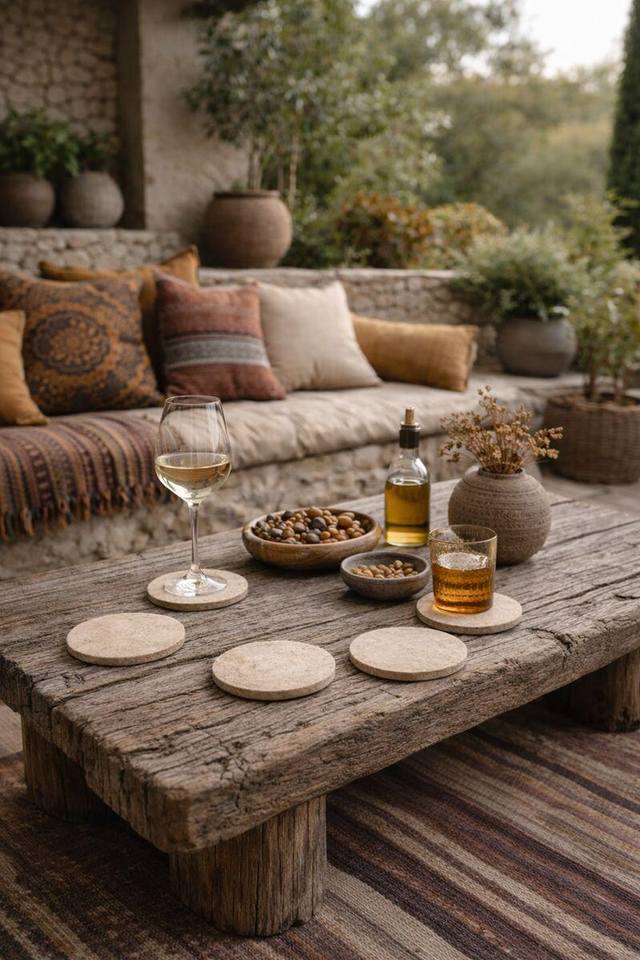 Ensemble de quatre sous-verres en travertin naturel, sous-verres minimalistes en pierre, décoration de table moderne, cadeau