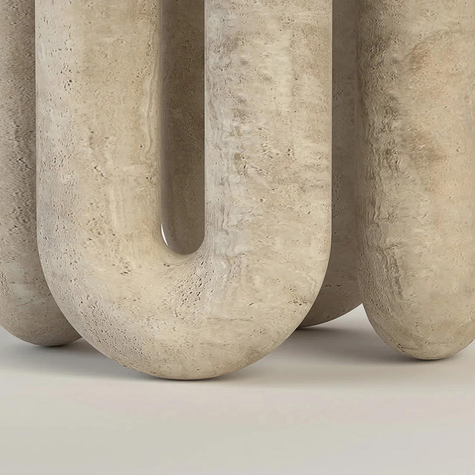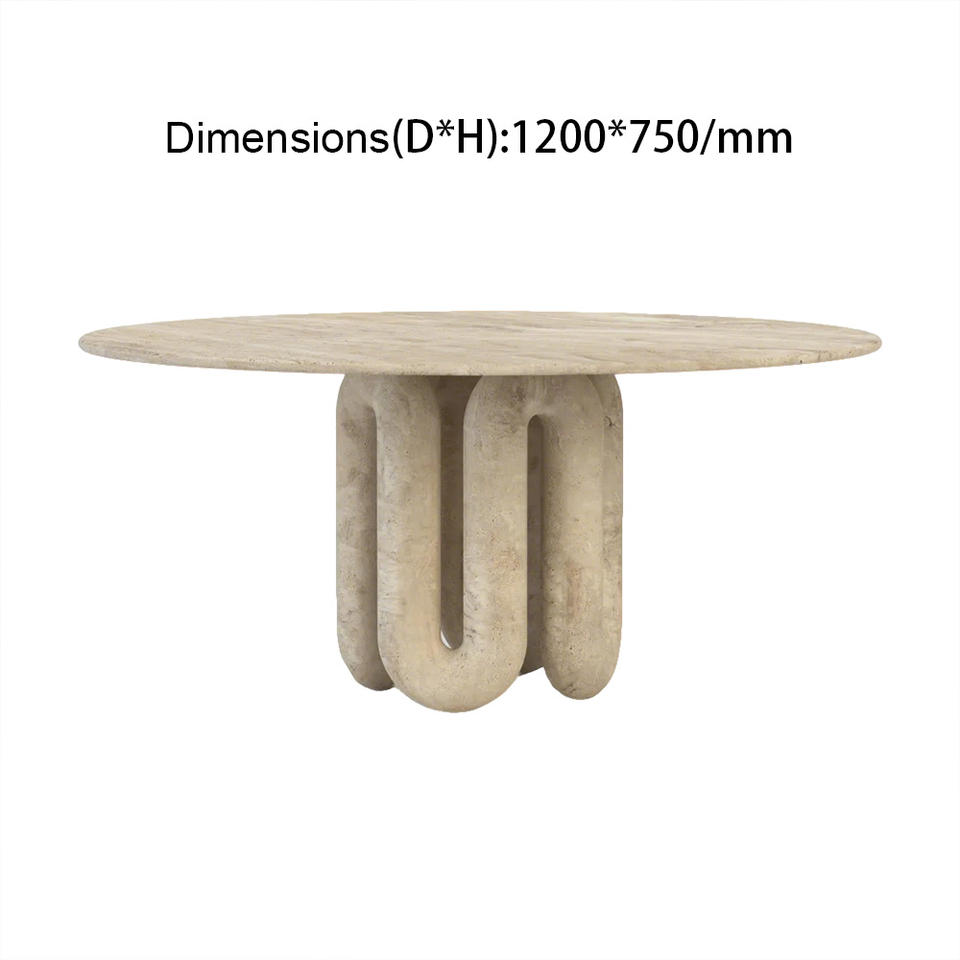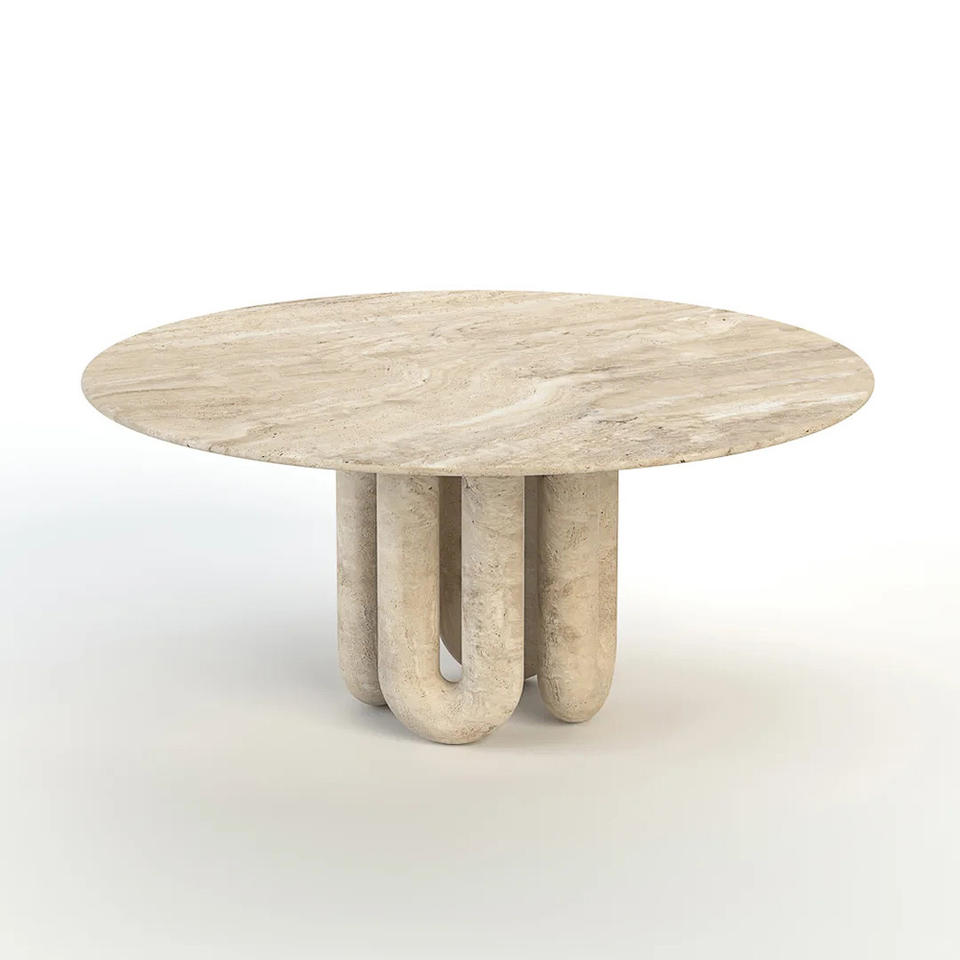 Table à manger ronde en travertin naturel avec pieds sculpturaux organiques pour meubles de maison de luxe 8-10 places