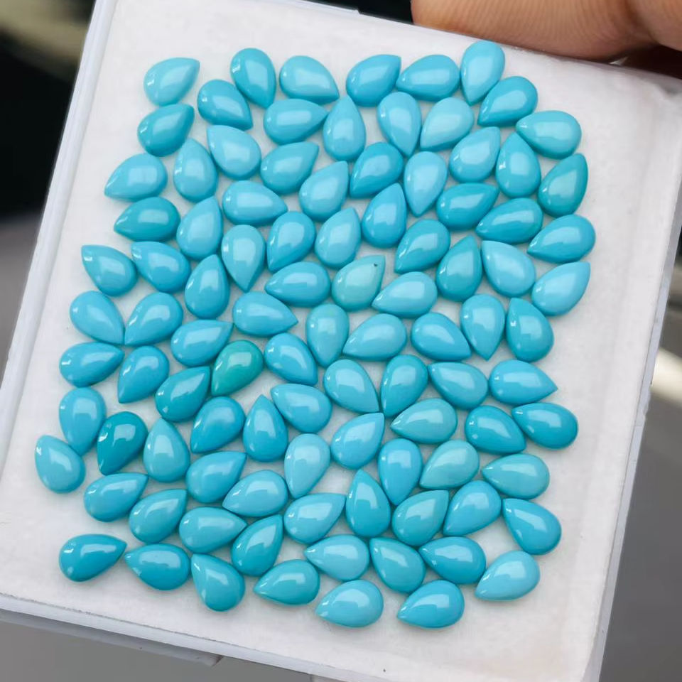 Turquoise naturelle d'origine Arizonienne, qualité AAA, avec un lustre exceptionnel et une couleur excellente, parfaitement taillée et polie, utilisée dans la bijouterie.