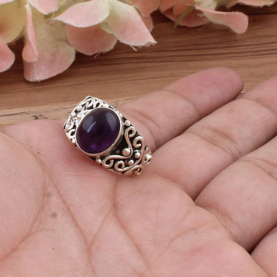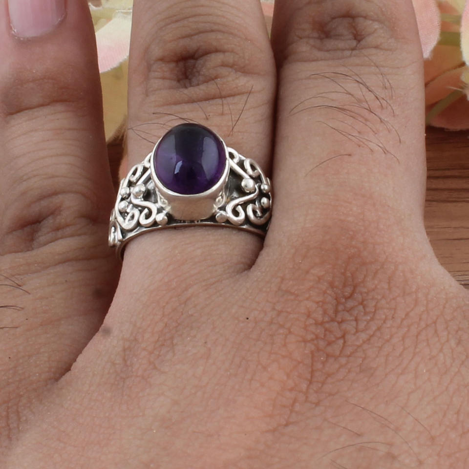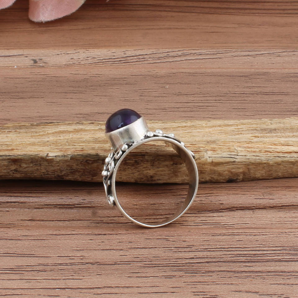 Bague en argent sterling 925 avec améthyste naturelle sertie clos, style Art Déco vintage, faite à la main, pour femme, Février