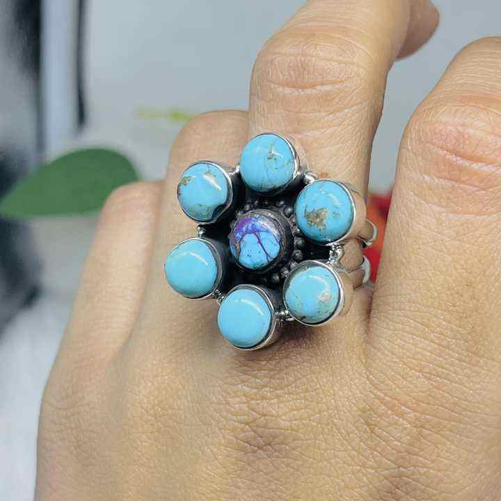 Bague de déclaration en pierre précieuse turquoise naturelle grande pierre de naissance ovale de décembre Style Boho bijoux en argent empilables