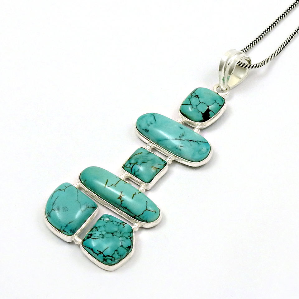 Pierre précieuse turquoise naturelle Design unique Collier pendentif délicat de luxe Bijoux en argent sterling 925 estampillés pour elle Vente en gros