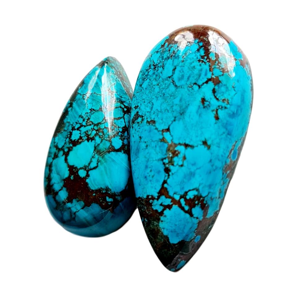 Pierre précieuse de turquoise naturelle avec inclusions de matrice noire toutes les formes et tailles coupées sur les commandes même à facettes est disponible
