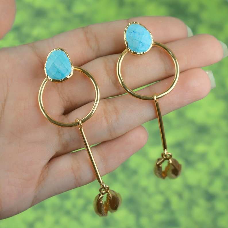Boucles d'oreilles turquoise avec pierres turquoise étincelantes.
