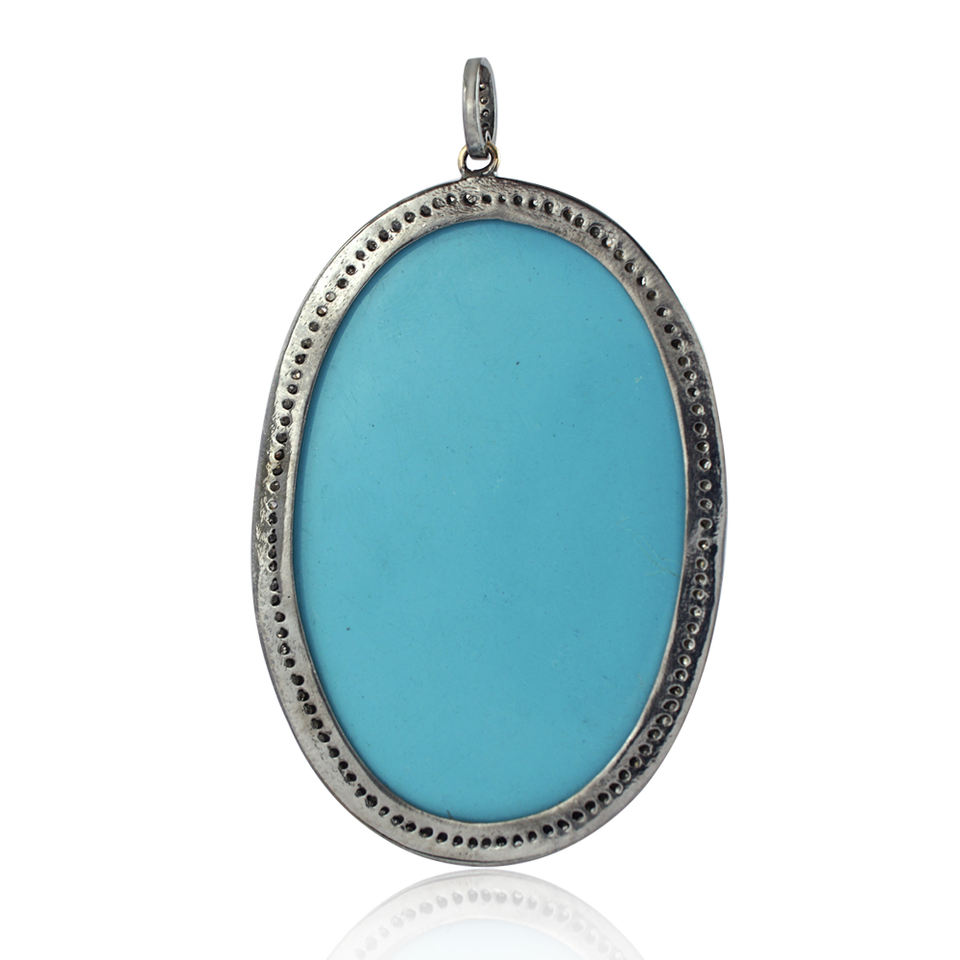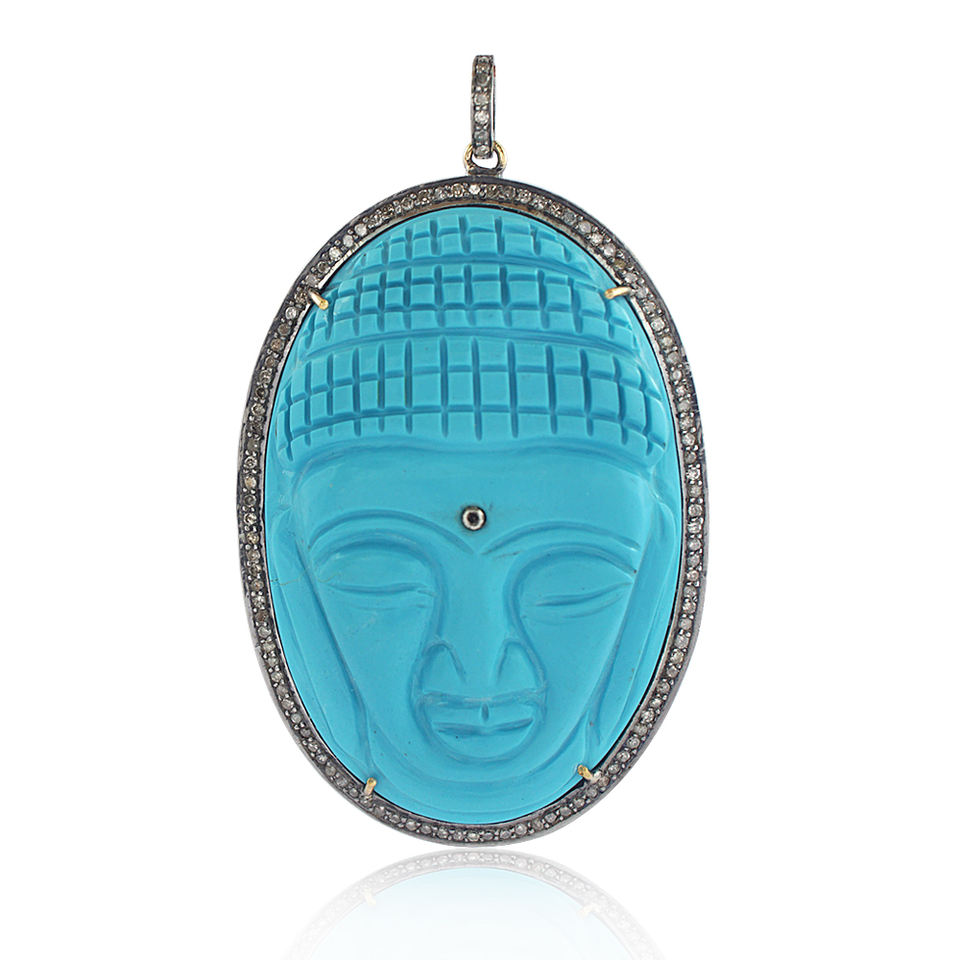 Pierre Turquoise naturelle 925 argent diamant sculpté pendentif bouddha avec chaîne oxydée collier bijoux en or 14k