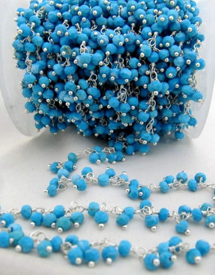 Rondelle de magnésite turquoise naturelle 3-4mm chaîne de grappe pendante perlée à facettes