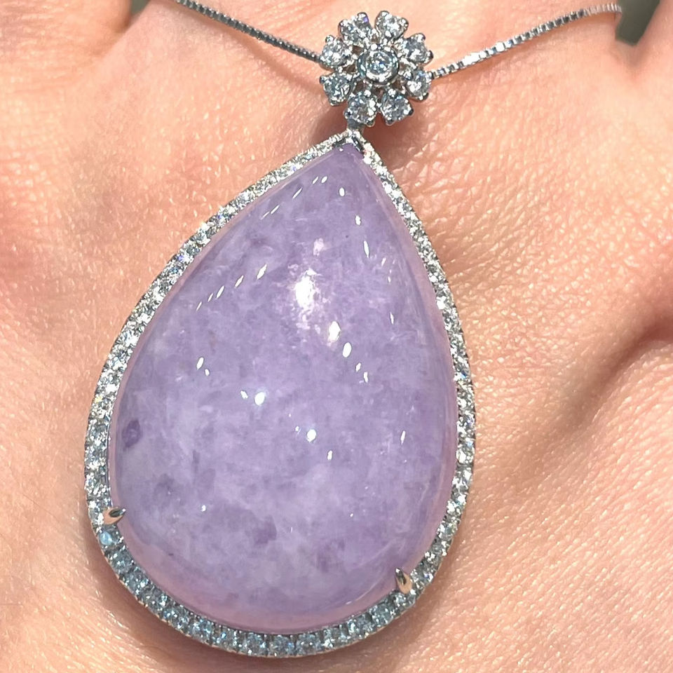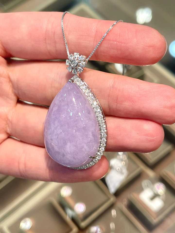 Nom du produit:Pendentif en jadeite violette avec minuscule collier en argent sterling 925 et zircon