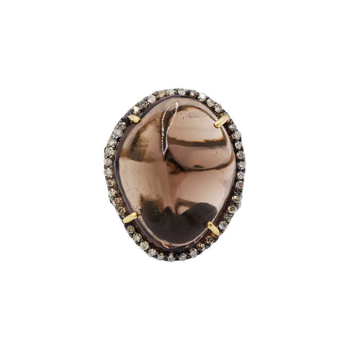 Quartz fumé avec diamant 925 bague en argent sterling