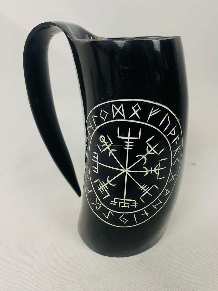 Corne à boire naturelle de style viking, écologique, sculptée à la main, motif animal, polie, pour bière, vin ou eau