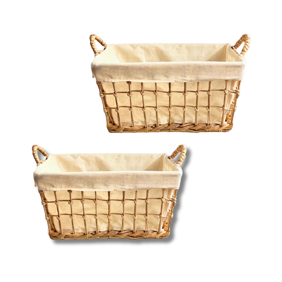 Panier de rangement en jacinthe d'eau naturelle Panier à linge rectangulaire fait à la main avec insert en coton