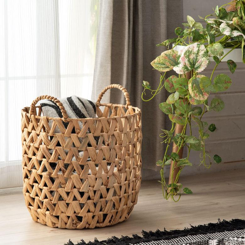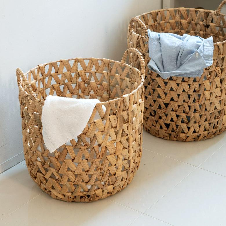 Panier à linge en jacinthe d'eau naturelle-Panier de rangement rustique artisanal du Vietnam Rangement décoratif et fonctionnel