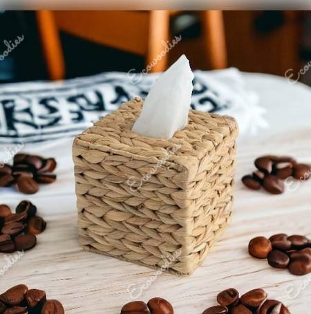 Boîte à mouchoirs carrée en jacinthe d'eau naturelle Boîte en osier cubique Porte-serviettes décoratif en osier naturel tissé à la main pour dessus de table