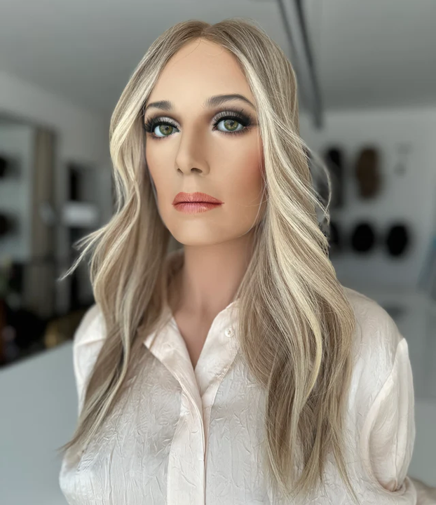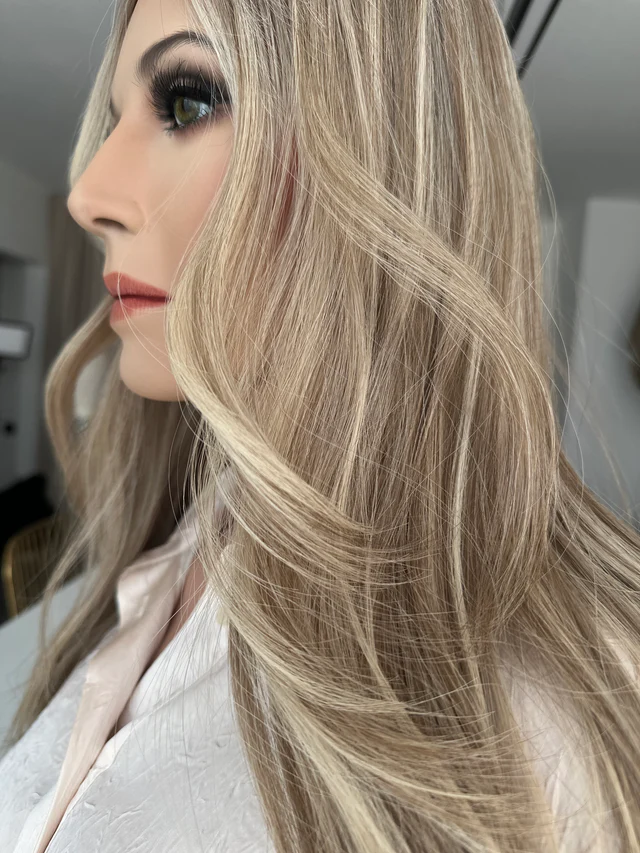 Balayage blond lumineux avec cadrage visage