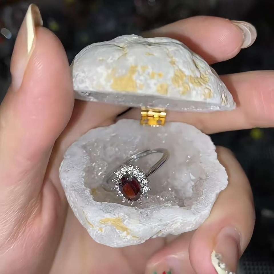 Boîte à bague en agate blanche naturelle - Boîte à bague créative pour demande en mariage, boîte à bijoux en cristal minéral très vendue