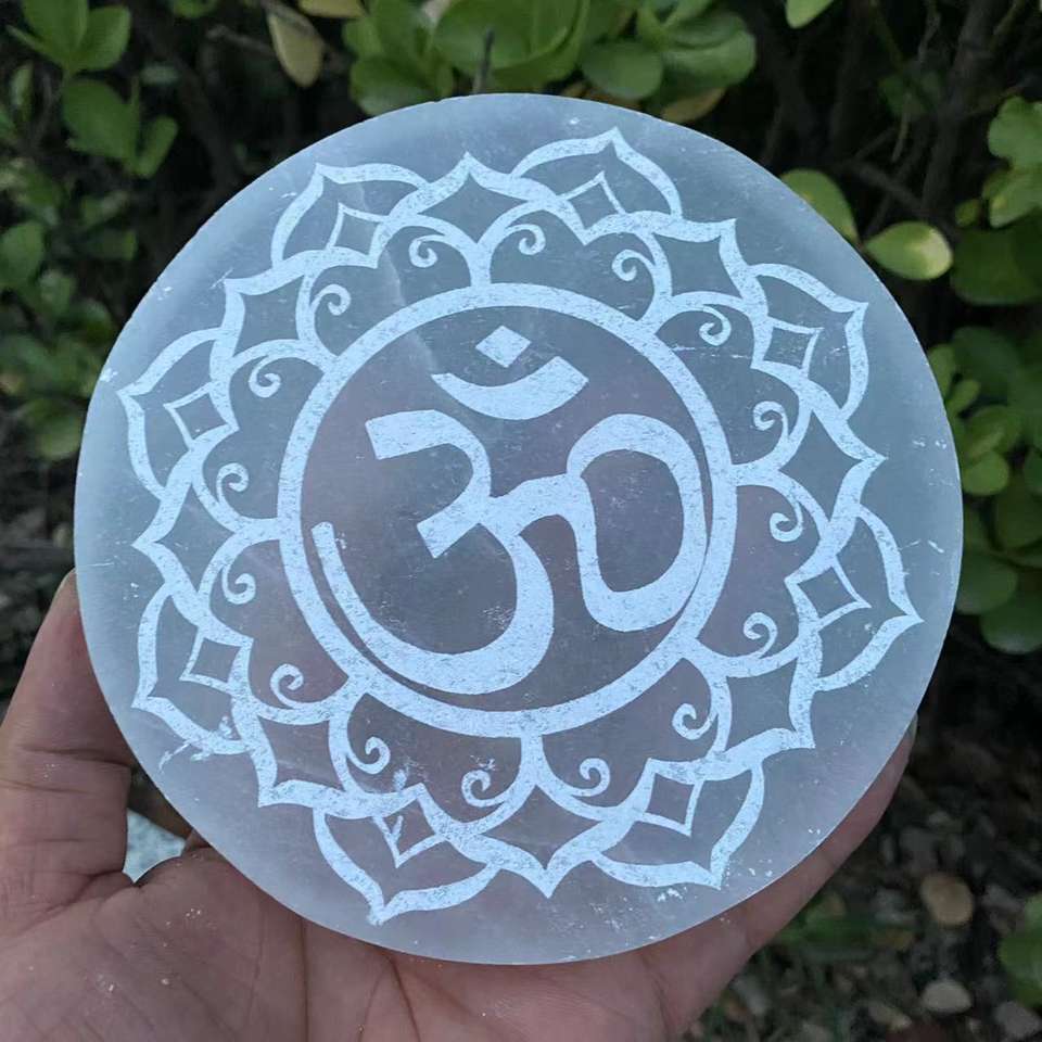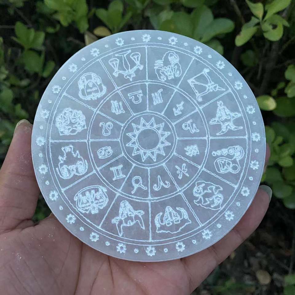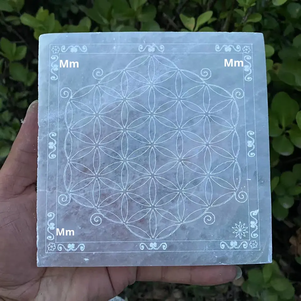 Pierre brute marocaine transparente en cristal blanc naturel, ornement colonne, motif arbre de vie, cercle du zodiaque, Yin-Yang, pour la maison