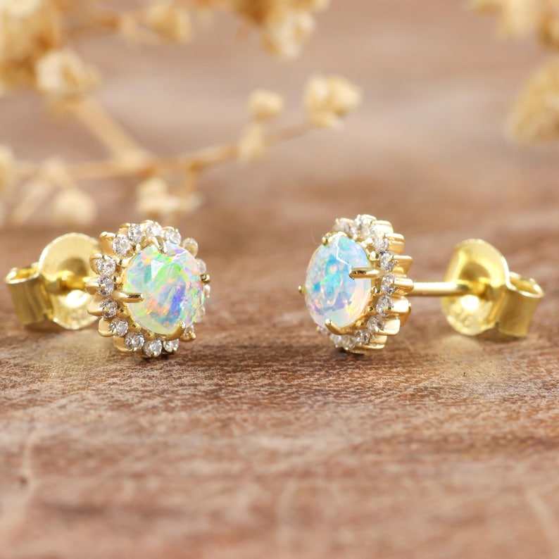 Product Name:White Fire Ethiopian Opal Stud