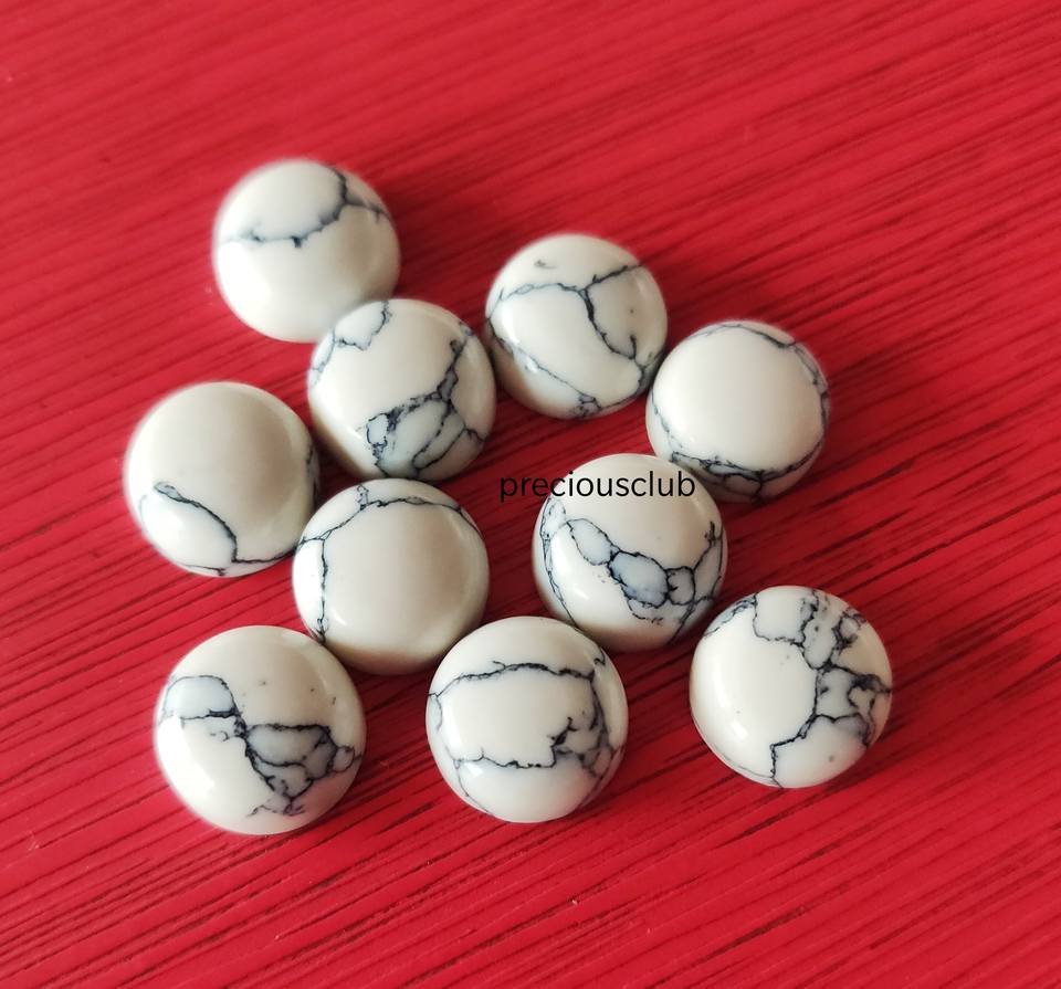 Cabochon rond en howlite blanche naturelle de 3 mm à 10 mm, qualité AAA