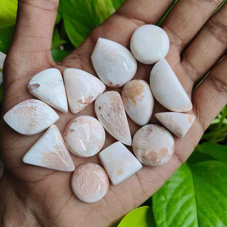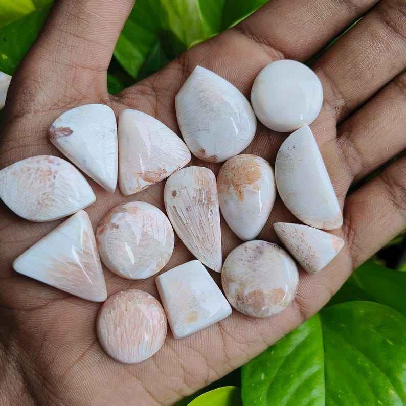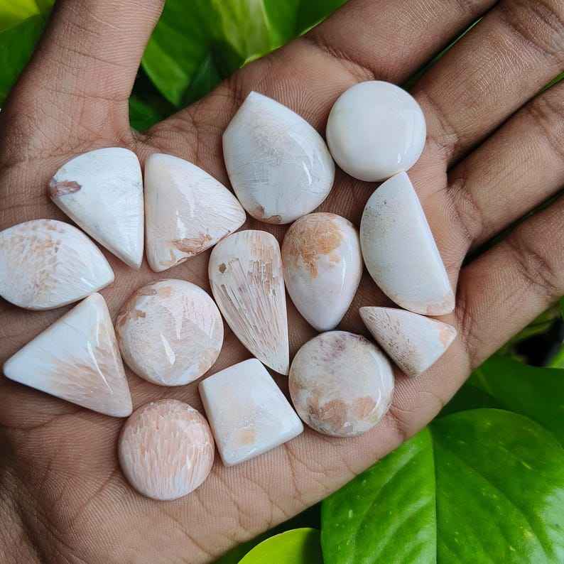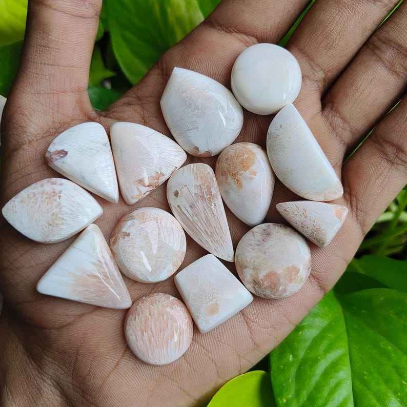 Keyword:Natural Pink Scolecite Cabochon Soft Pastel Shades Unique Patterns
