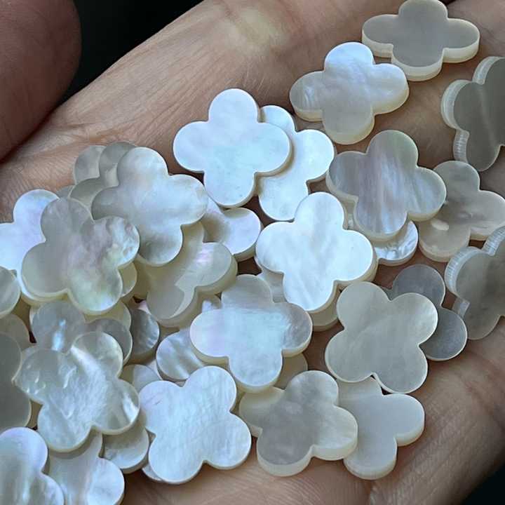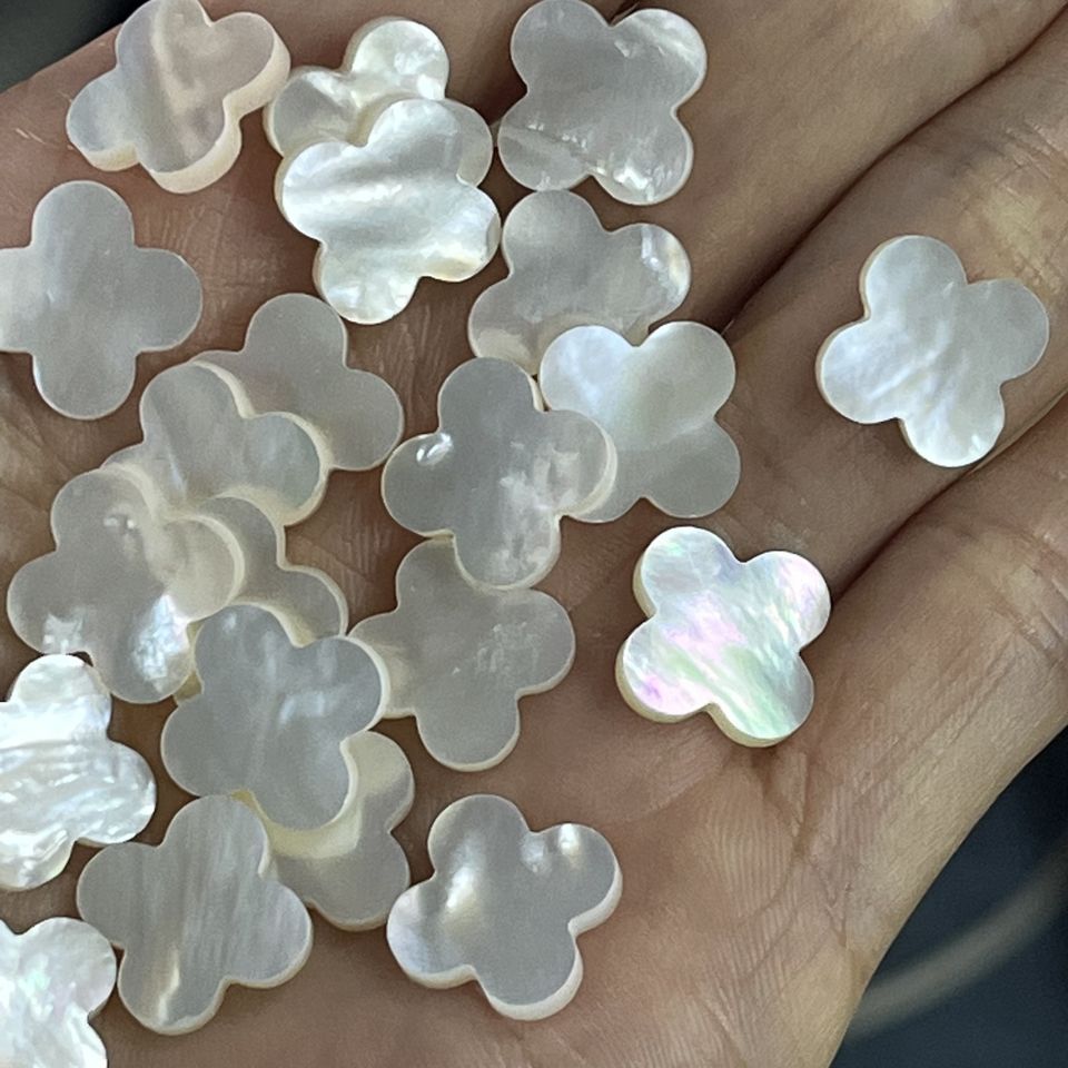 Pierres précieuses en forme de trèfle à quatre feuilles, blanches naturelles, traitées thermiquement, double face, avec jeu de couleurs pour la fabrication de bijoux