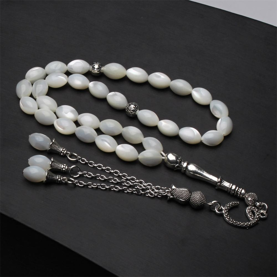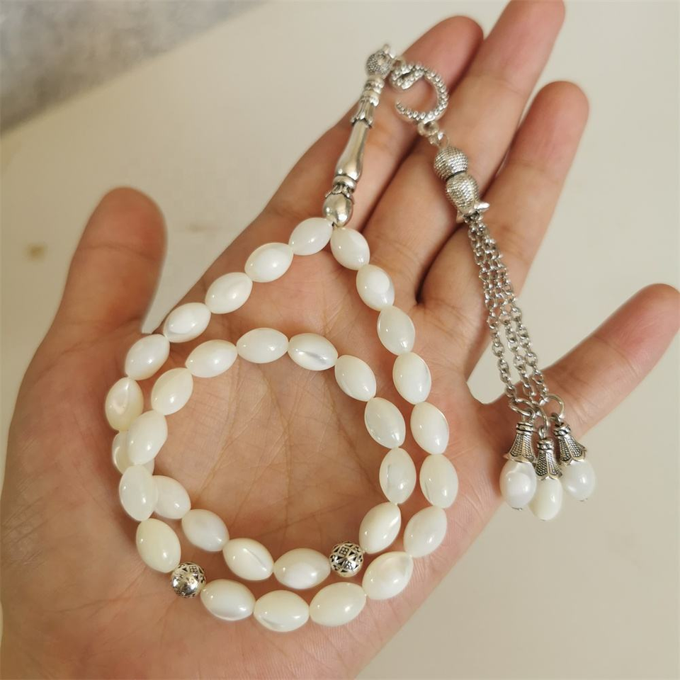 Bracelet musulman en coquille blanche naturelle, vente en gros d'usine, 33 perles de prière islamiques, Tasbih, chapelet, Tesbih, Tasbeeh islamique, Sibha