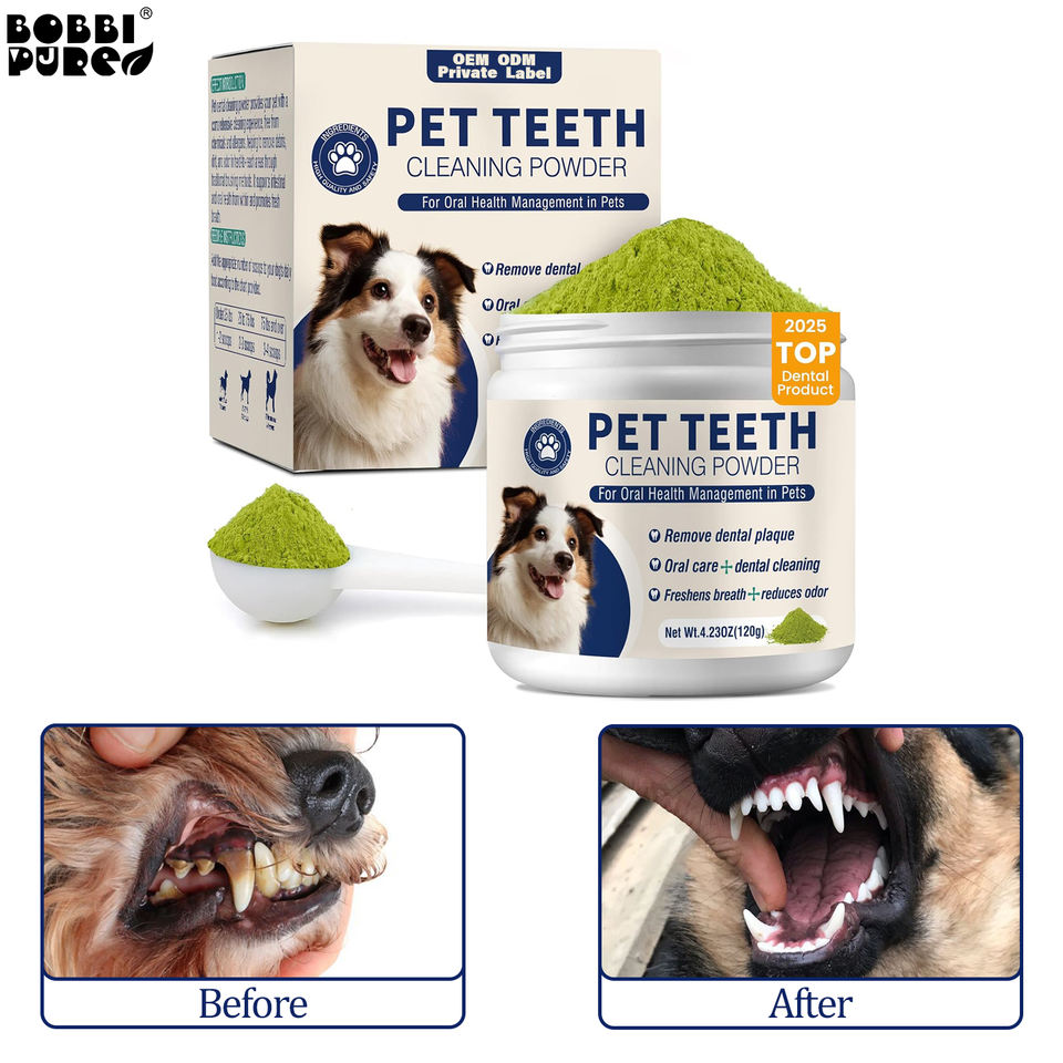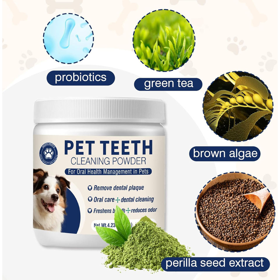 Poudre dentaire blanchissante naturelle pour chiens et chats Contrôle du tartre Complément de soins bucco-dentaires pour animaux de compagnie Soins de santé et suppléments